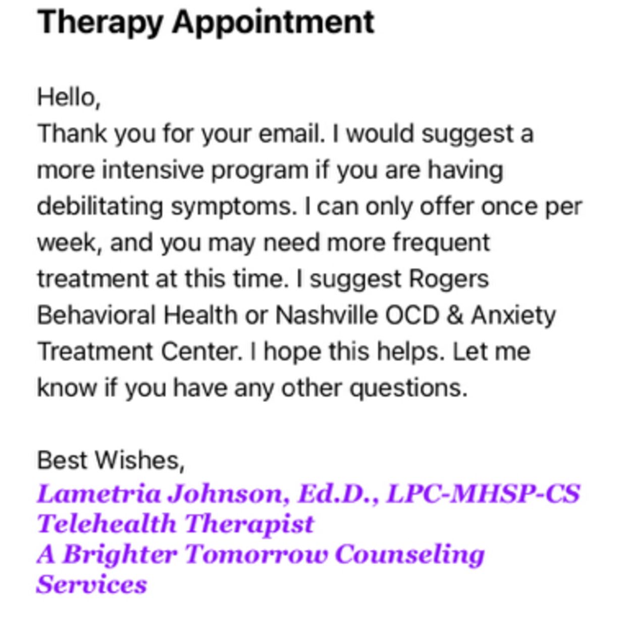 I tried looking for a therapist that can help me wit my ocd and go somewere to get on medicine and do that while waiting to get into somewere but there’s only 2 ocd therapist in the state of Tennessee and neither one take Medicaid and some places have told me I could be reimbursed but I can’t afford to pay them to be reimbursed I only get 533 a month you can’t even find an apartment for that cheap but I can get into a place for medicine but I’ve been on medicene in the past and nothing worked and the ppl prescribing it didn’t understand ocd so I don’t want someone who doesn’t no wat I’m dealing wit I’ve seen multiple doctors to I wouldn’t go to a regular doctor for surgery I’d go to a surgeon the regular doctor mite no that I need surgery but he can’t actually do it just like the doctors prescribeing me medicene they no certain medicine helps ocd but they don’t understand it.