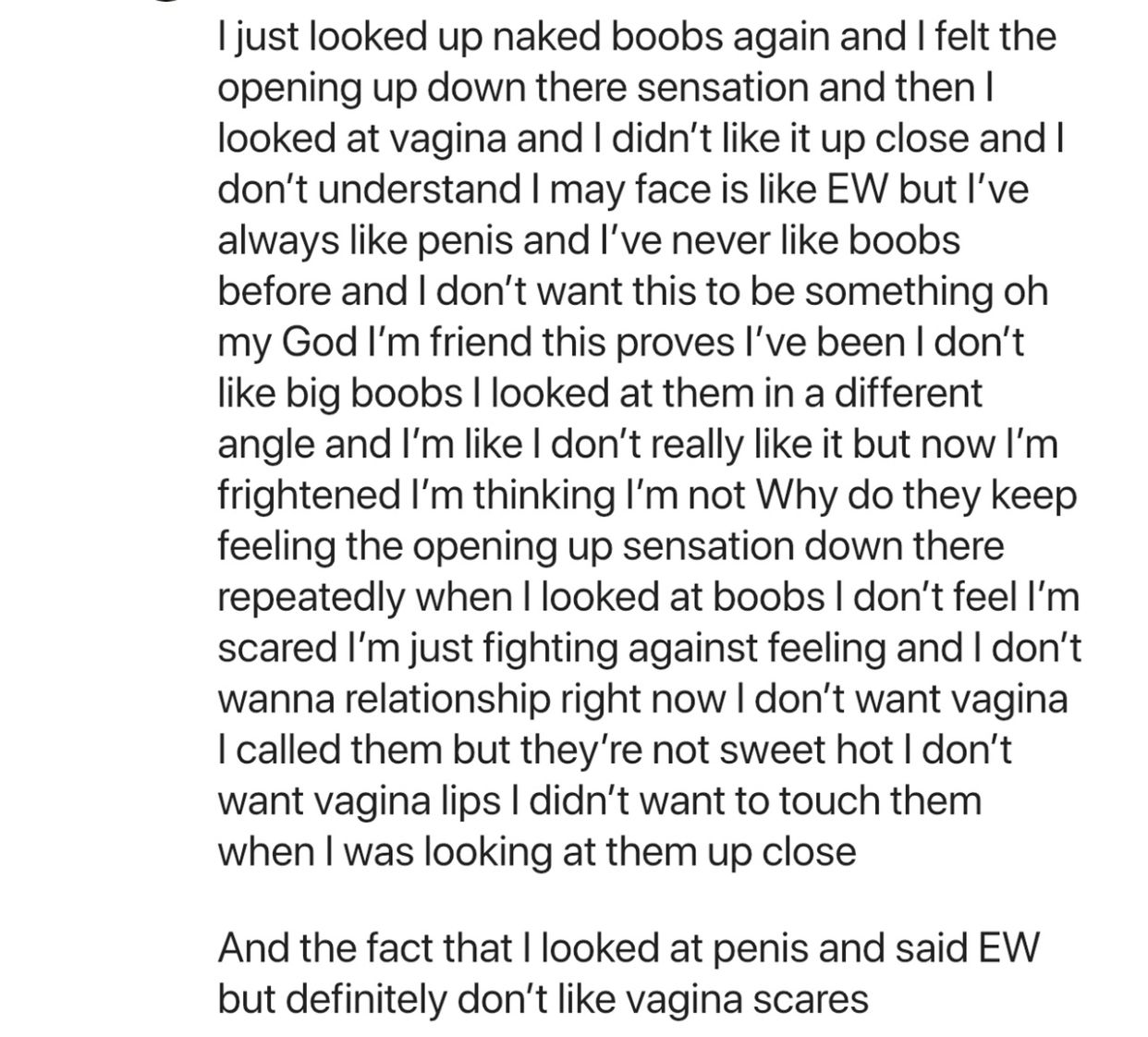 I was trying to go about my day. Finished a good part of my chores and then I thought of naked boobs again and I called them hot when they're not and I just don't understand how I could've done that then I'm scared I said like nothing I don't want to feel better saying nothing more when I don't like anything less and I meant to say I keep saying what smelt like anything I don't keep insisting but I don't like I can't stop to get big brown boobs in the nipples and I'm friend I don't like it I keep saying anything more I don't like anything less not more the hell I meant to say was there's nothing more that I don't like why did I feel better saying nothing more when I don't like boobs there's nothing I like less there's nothing more that I don't like that's literally all I was trying to say ** round not brown color doesn't matter I feel were saying less why do I always smile and feel better saying that's why would I feel better saying that I don't like anything less I keep hearing the word more why would I feel better saying that there's nothing I like less not more I feel so guilty like I can't breathe I don't like boobs at all I don't like anything less I'm scared of how I felt I keep smiling sing more but I don't like boobs I don't want this and I feel worse when I say that I don't like it but I don't like boobs I don't like anything less why did I do what I did why did I react as I did it I'm scared I'm just changing and I shrug like I'm just lying why would I feel better saying more when I don't like boobs and I feel worse when I say that I don't like them but I don't like boobs I really don't know I really don't gunna take a deep breath and try to continue my day My bisexual friend who keeps screaming at me that I’m straight says that I probably wouldn’t react at all if I didn’t have Flexeril in my system I hope she’s right I hate feeling like I I don’t want to start seeing women differently that’s awesome woman on her back holding her baby I said but I don’t want her boobs to be perfect I don’t wanna imagine them naked and smile weird in and now I’m scared cause I make a face I never thought I did I know I don’t like boobs deep down but now I can’t help feeling like I can enjoy my guys just and I hate that because I think he’s awesome I don’t wanna think I’m not is obsessed with him as I’ve always been I don’t want him to go away in the booth thing is really kicking my ass