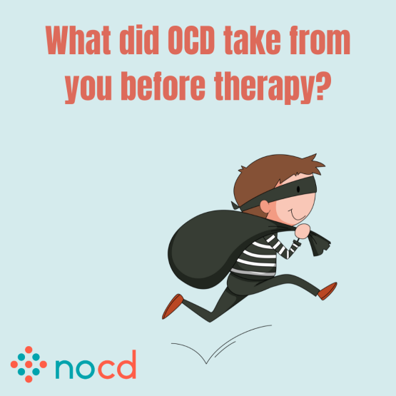 OCD took so many days away from me. It took my happiness. It took my time. It felt like it took everything away from me. Therapy and medication gave me my life back.
