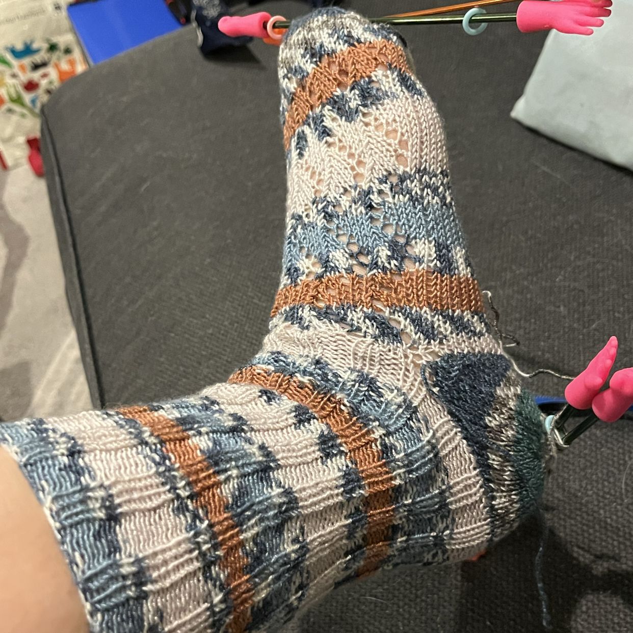 I have faced a few struggles while pattern-testing for a friend and knitting this sock for myself. There are some blatant errors I made that I might redo. There are also a number of places that didn’t come out “perfect” or “just right”. While I haven’t ruled out redoing a bunch of the parts that bother me, I am fighting my OCD that’s screaming at me by putting this sock aside until I’m in a better headspace or until the designer makes any requests. 🤫 Shh, don’t tell my OCD, but giving my project space often means I’ll come to accept the imperfections rather than give in to irrational and unattainable standards of perfection. 😉 Strength and comfort to us all, and doggo snuggles to all who want them. 💪🏼💜🐶