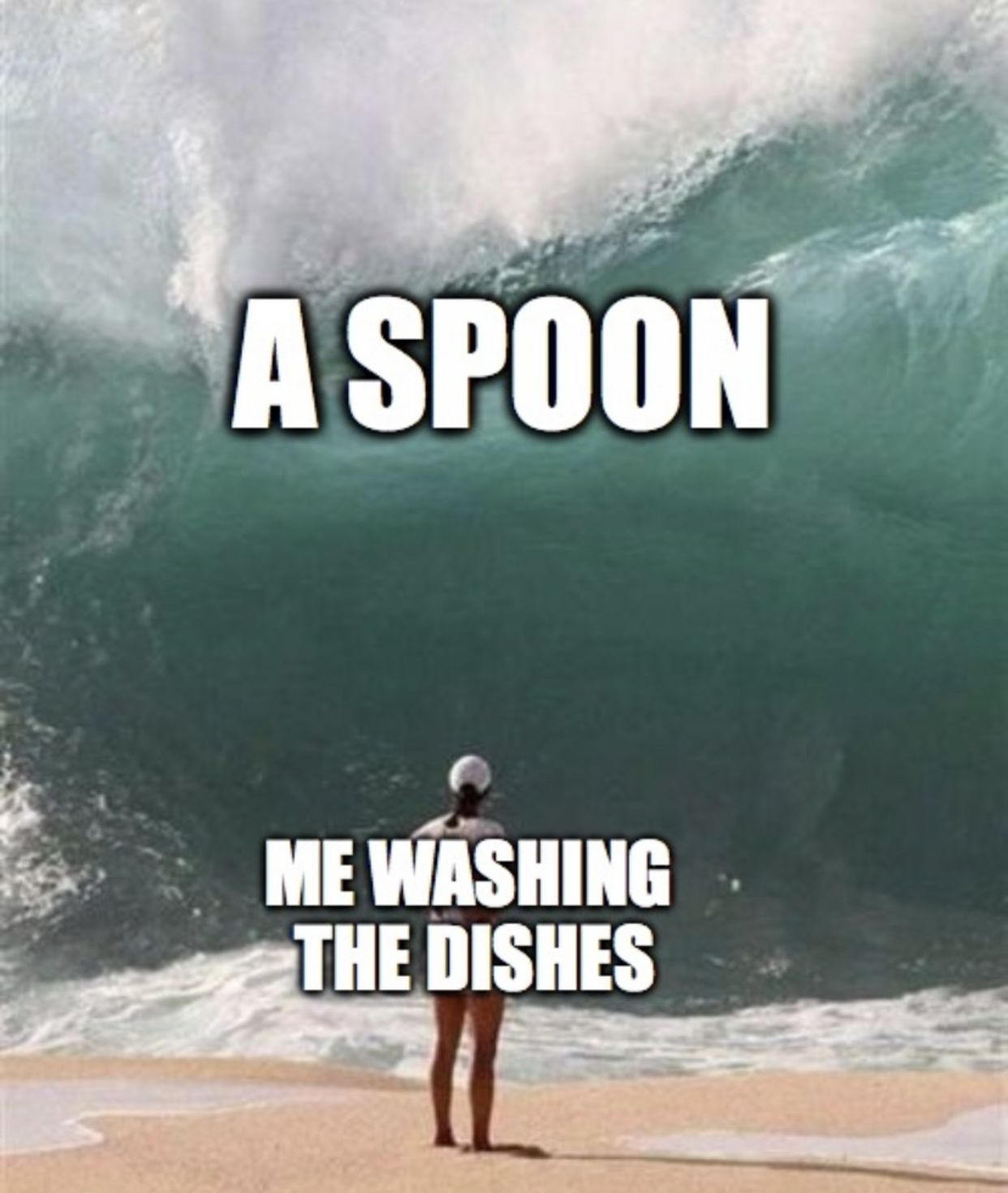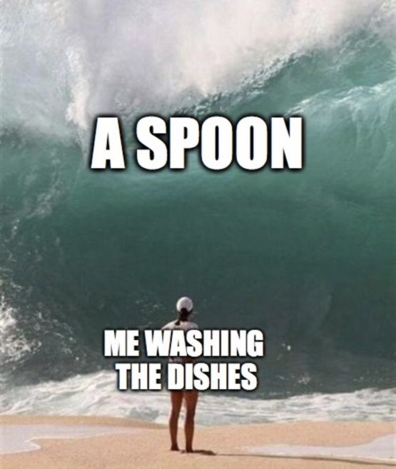 I’m not sure how a lot of y’all thought me sharing an ex spire for a spoon water attack was me being traumatized and then also me not being allowed to joke while sharing my own mini ERP with said spoon water incident, so here’s a meme 😁🤣 Also, I know quite a few people have mentioned on here about dish water and contamination OCD, especially water from a spoon getting on their clothing and what to do. I’ll share again, and let’s get it right this time… Sometimes, water hits a spoon you’re washing and it attacks you. It’s sometimes nasty. Other times, it’s not. In the spoon water attack situation, steps to assess what your rescuing is and your ERP session: 1. How much water is on your clothing? 2. Is it food, water, soap, etc. and how much? Your extreme reaction to immediately shower for an hour and scrub your skin raw is not the correct reaction. But it IS okay, depending on the situation, you change your shirt (especially if there’s food bits from the spoon) and wash your hands. And we don’t want staining of the shirt, so hitting it with Spray and Wash is fine IF there’s food or wine that got on your shirt and could stain. It’s ALL about reasonable reactions AND accepting those reasonable reactions. Your OCD won’t like that because it wants you to shower for an hour or more and for you to scrub your skin raw and wash your clothes over and over again—but that isn’t reasonable. I looked at my jacket after the splash and it was just a few water spots. I did nothing about it and went on to eat dinner. That is ERP. That is one of the big reasons why I’ve been recovered for years: what is reasonable and never listening to my OCD.