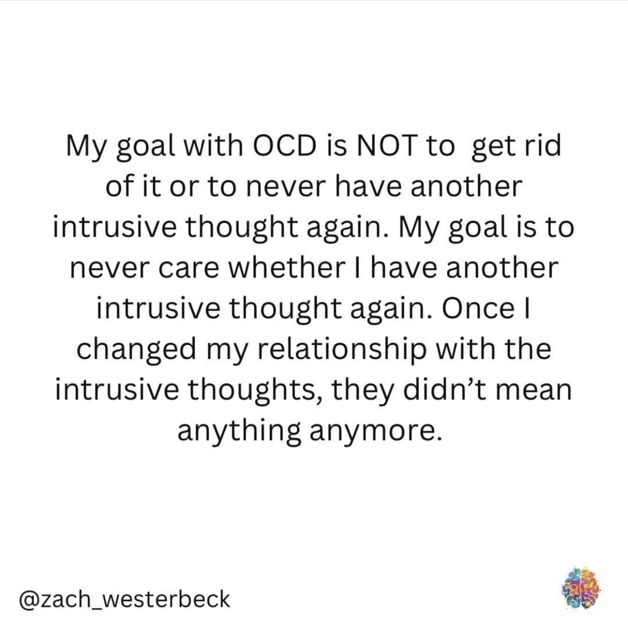Well, a nice goal. In a way it in itself leads towards getting rid of ocd. Because if you achieve to NEVER care, the ocd will go away sooner or later. Right? That's what they keep telling us ( the ultimate goal of Erp). I am not trying to be sarcastic, but you should be our teacher, since you managed to achieve what the rest of us have tried to in many many ways, but have failed again and again. You just might be the answer to our prayers. You make it sound so easy. What have we been doing wrong? What have I been doing wrong? We all would give a lot, to find a way we could change our relationship with our intrusive thoughts so that they never mean anything anymore. I have thought contamination or emotional contamination ocd. It's one of the most debilitating and difficult types of ocd. It does ruin your life. It isolates you, prevents you from watching TV, going on internet, using social media, going outside,work, let people come to your house,........ +1000000 more. It does bring you an inch away from giving up many times unless you are on meds and then get the advantages of therapy, ERP,.... So please tell me how do I change my relationship with my stupid, irrational intrusive thoughts or even better feelings(for me it is more of an intrusive feeling than a thought, first feeling than accompanied by the thought)? I might have misunderstood you. Maybe it wasn't all that easy for you also. Maybe you worked hard and used different techniques. You make it sound like all it takes is to make a decision not to give a damn anymore. I am very happy you are doing so great! Sincerely! Please, give advice. 🍀👍