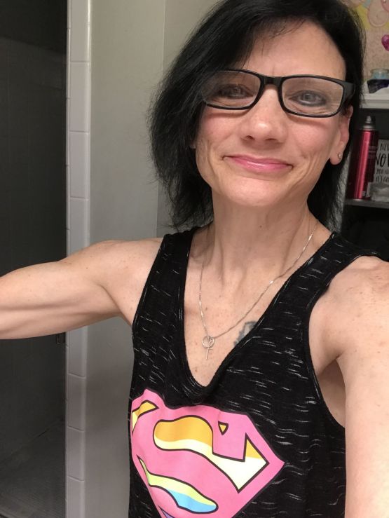 It controls my whole life. I mean it dictates everything I do. I want to be able to come home from work and sit down and relax instead of focusing on everything that still needs to be done before I go to bed. Because right now, the only time I sit down is to eat my dinner. I dont even take breaks or lunch at work because Im so scared I wont get everything done and I cant leave and I mean my OCD wont let me leave until I have done everything. Can you imagine working in a pet hotel with OCD? It’s exhausting and it feels like something always needs done, which normally it does. There is always something that needs to be done in a pet hotel and you cant be done for the day until it is. This is a pic of me wearing my Superman tank top because thats who I feel like I need to be all the time. I also have Iron Man and Supergirl…
