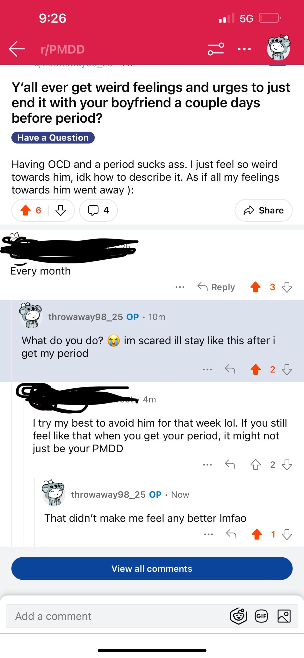 Went on the PMDD sub on Reddit to ask if anyone ⬇️