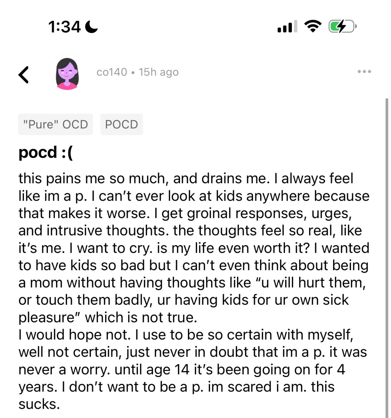 going through this again, always having. Groinal responses, either stemming from an intrusive thoughts or something I heard/seen, or I have a groinal for no reason then the thoughts come. I also have a urge to m-sturbate which is one of my compulsions:( I hate this