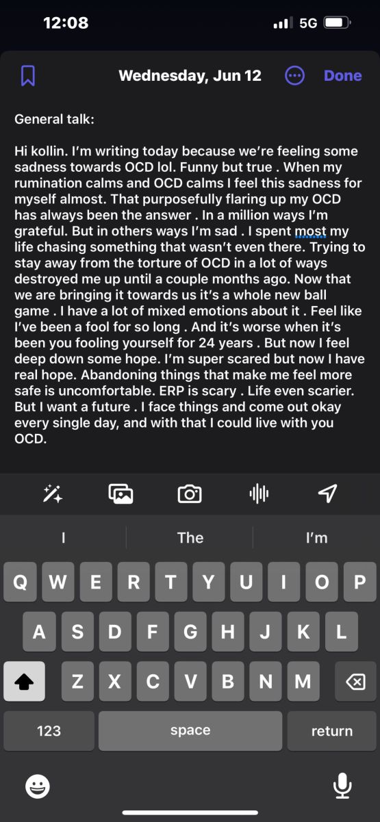 I wanted to share with you guys some of the things that have helped me in the past few weeks! If you’re open to it, maybe try a few and see how you feel! First I would really recommend leaning on God. If you’re not a believer you may be skeptical but if you’ve never tried to read the Bible, prayer or even just talking with God, I would recommend so much! My relationship with God has gotten so much better through this terrible illness and in turn I have noticed a lot of positivity, I feel substantially better since I’ve been trying to bring this to God instead of worry about it myself. If you can give your worries to God and learn to have faith that he is with you, loves and forgives you. You have a great step towards recovery and even just a more positive life. Next, try going outside! I know it sounds kinda dumb but I mean it! Some of my best days started with just going outside, reading a book and or listening to music. I went out and tanned, ate some fruit with some lemonade and read “Girl Wash Your Face” it was a great book! I would spend HOURS and it helped me so much! Take a walk, hike, etc.! This leads into the next thing…READING! I recently bought the new book “don’t believe everything you think” and the workbook and it is amazing! This also applies to reading your Bible and other books, specially ones targeting self help and things like that! Another thing is fitness! Try out the gym, I know there is days that you just can’t bring yourself to get up but in those days, make yourself go to the gym! Even if you just go walk on the treadmill or bike! Anything is better than nothing! Keep yourself active, I promise it will make you feel better! Find a good podcast! I have been listening to (The OCD Stories on Spotify), sometimes I’ve even listened while I was going to sleep and let it play through the night! Go on YouTube and follow Chrissie Hodges, NOCD and look for other people who help! Go on instagram and follow Chrissie Hodges, NOCD, iocdf, sincerelyocd, recoverocd, letstalk.ocd, my lovely ocd and there are so many more! Find good music! Again I’m going to bring up worship music some of my favs being ( I Thank God, Move of God, Hard fought Hallelujah, The Truth, Made for more, Thy Will, and there is so many more!) if you would like I can share my playlist! But overall music is so helpful and if you are not a believer or want something different I would recommend songs by Katy Perry, Lady Gaga, Kesha, Rihanna, Demi Lovato, Kelly Clarkson, even Billy Joel, Queen, Beck, and things of that nature that are gonna get you PUMPED UP! Lastly, hang out with PEOPLE! Don’t let OCD rule your life, put your ocd in a box best you can and go live your life! Get lunch with a friend, join a bible study, go get a massage, even just meet up with a friend and talk in a parking lot while shoving your face with fast food! You NEED interaction as much as you don’t want to! I know some of these are hard, some is triggering or you’re nervous that you’re gonna spiral, but step out of your comfort zone! That’s the way to get better! Do things that make you feel uncomfortable, the things that are unknown, the things you used to do before this! You can still live and love your life you don’t have to keep just “surviving”! And this isn’t a fix all, trust me I still have my days where I’m like nope I’m staying in bed and crying, but you need to push yourself! No one is coming to hold your hand and walk you out of this, you have to want to help yourself too! And you can do that! I know it’s scary and uncomfortable but you got this! We’re gonna kick some OCD butt! I hope you find this helpful and I wish you the most luck! Comment if you have questions and whatnot! 🫶