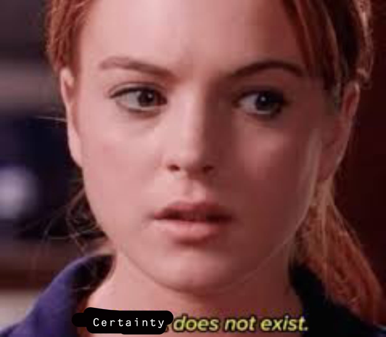 Me realizing that the correct answer for certainty is no answer because it does not exist in OCD/anxiety. Certainty is holding you down and holding you back. Let go and accept the uncertainty.