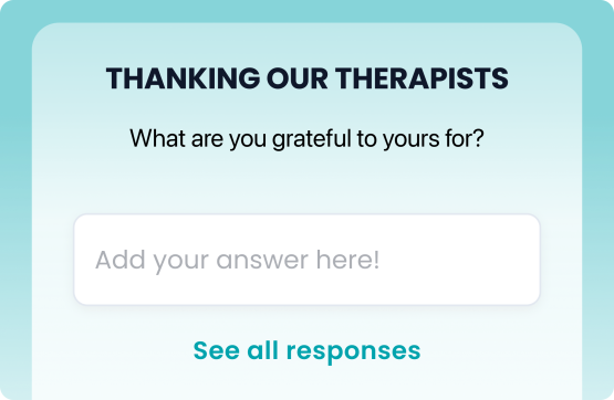 I want to thank my therapist for helping me come out of my shell and communicate my issues and fears in a healthy way. Thank you for helping me find a reason to go on.