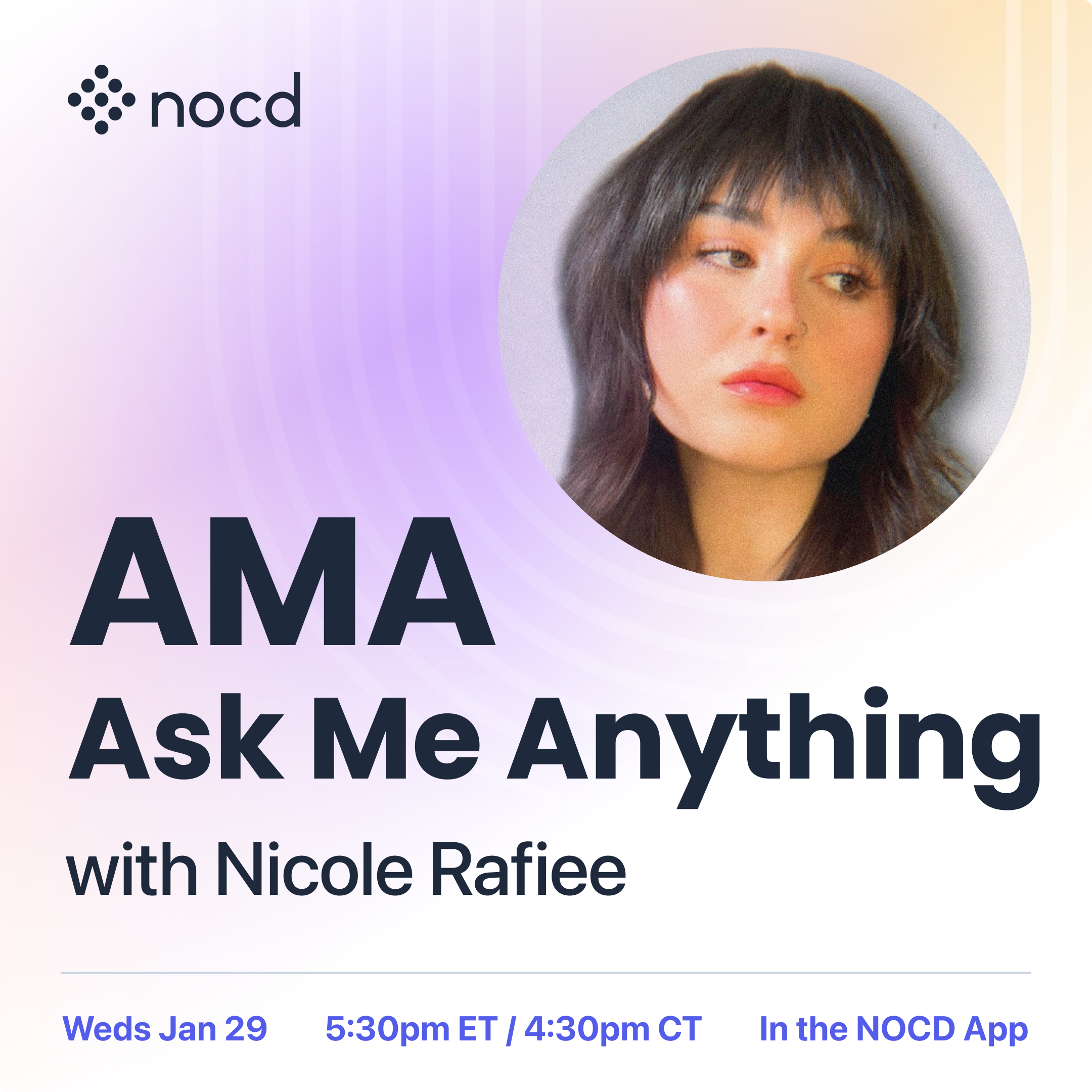 When Nicole Rafiee shared her most shame-ridden OCD fears with over a million YouTube subscribers, the overwhelmingly positive response inspired a mission to make her channel a safe space for real, honest conversations about OCD. Now she’s joining us for a special AMA (Ask Me Anything) event right here in the NOCD Community! This is your chance to ask Nicole about her journey from hiding her OCD symptoms to helping millions of others feel less alone, how she learned to manage OCD long-term, her mission to spark honest conversations about OCD, and more. Submit your questions for Nicole in the comments below and she’ll respond to as many as she can during her AMA. AMA details: 📅 When: Wednesday, January 29 at 5:30 PM ET / 4:30 PM CT / 2:30 PM PT 📍 Where: Right here in the NOCD app ❓How to ask questions: Comment below! Nicole will share written responses in this thread. This AMA is purely informational, with Nicole pulling from her personal lived experience. We encourage you to ask your therapist for individual advice. Read Nicole’s story: https://www.treatmyocd.com/blog/nicole-rafiee-opening-up-about-ocd/
