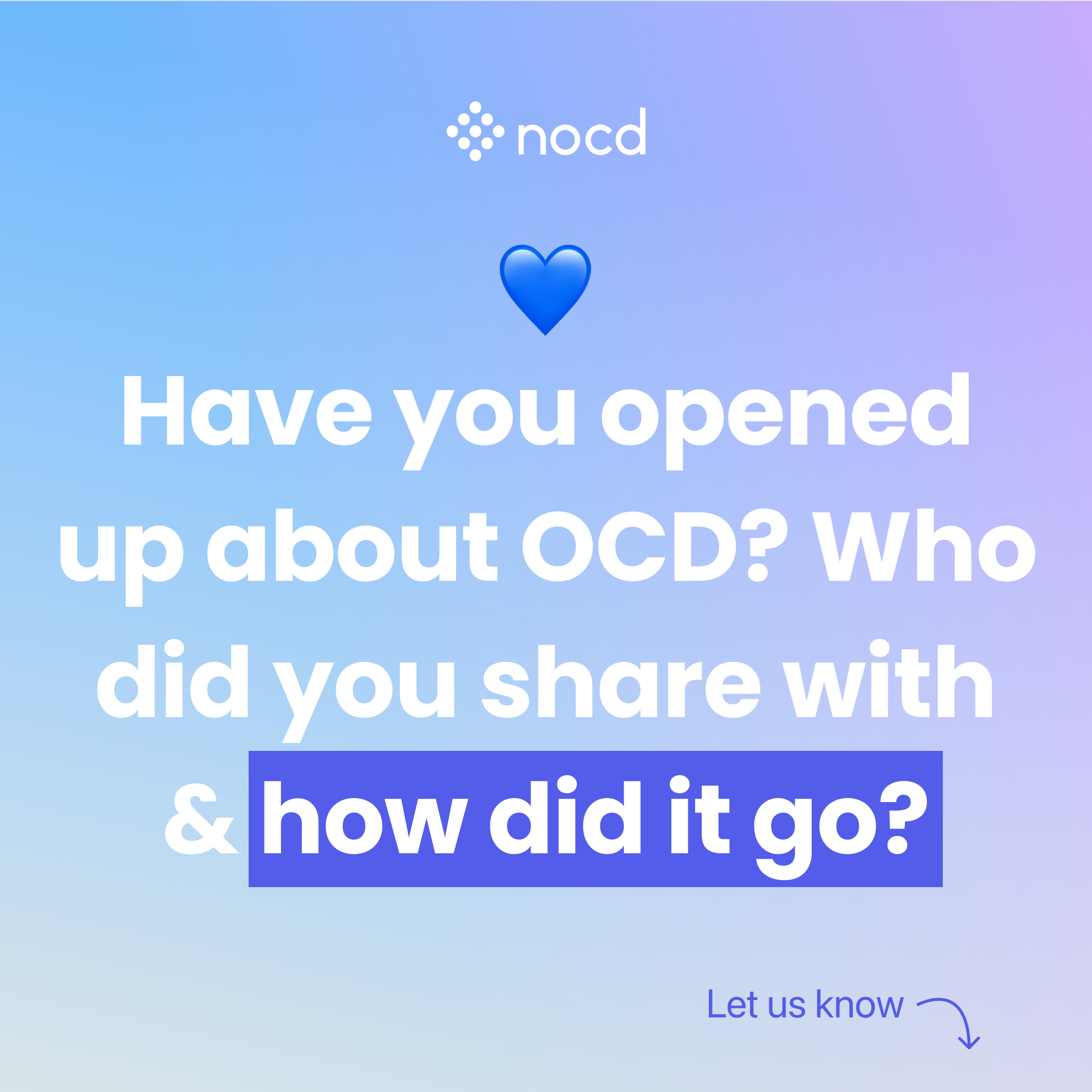 Who have you opened up to about your OCD, and how did it go? Share your experience—and, if you'd like, any tips you’d give to others who might be thinking about opening up for the first time.