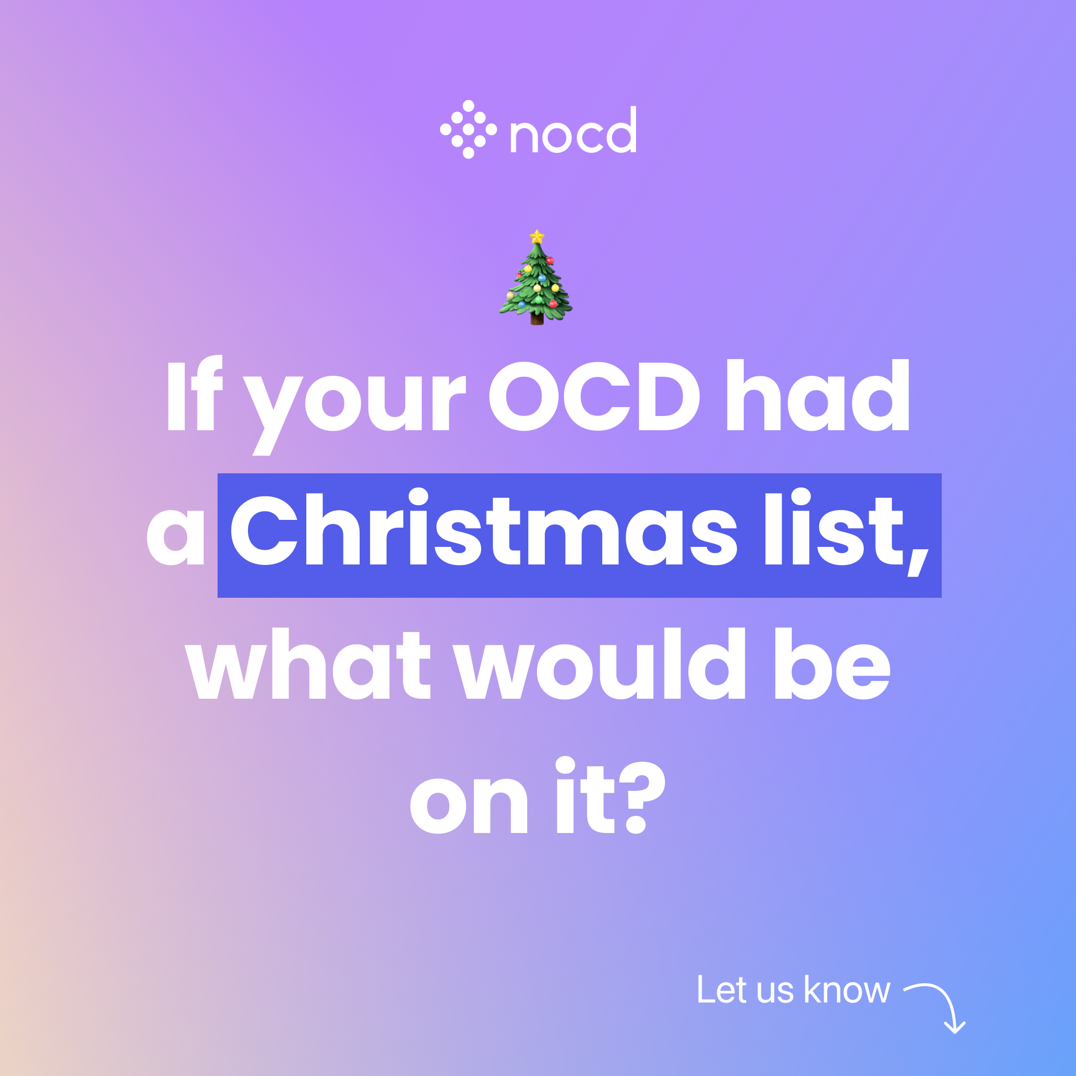 We'd put OCD on the naughty list...but if it wasn't, what do you think it would want for Christmas? A mind reader on call 24/7? The power to make you doubt literally everything? Share your OCD's wishlist in the comments—humor welcome.
