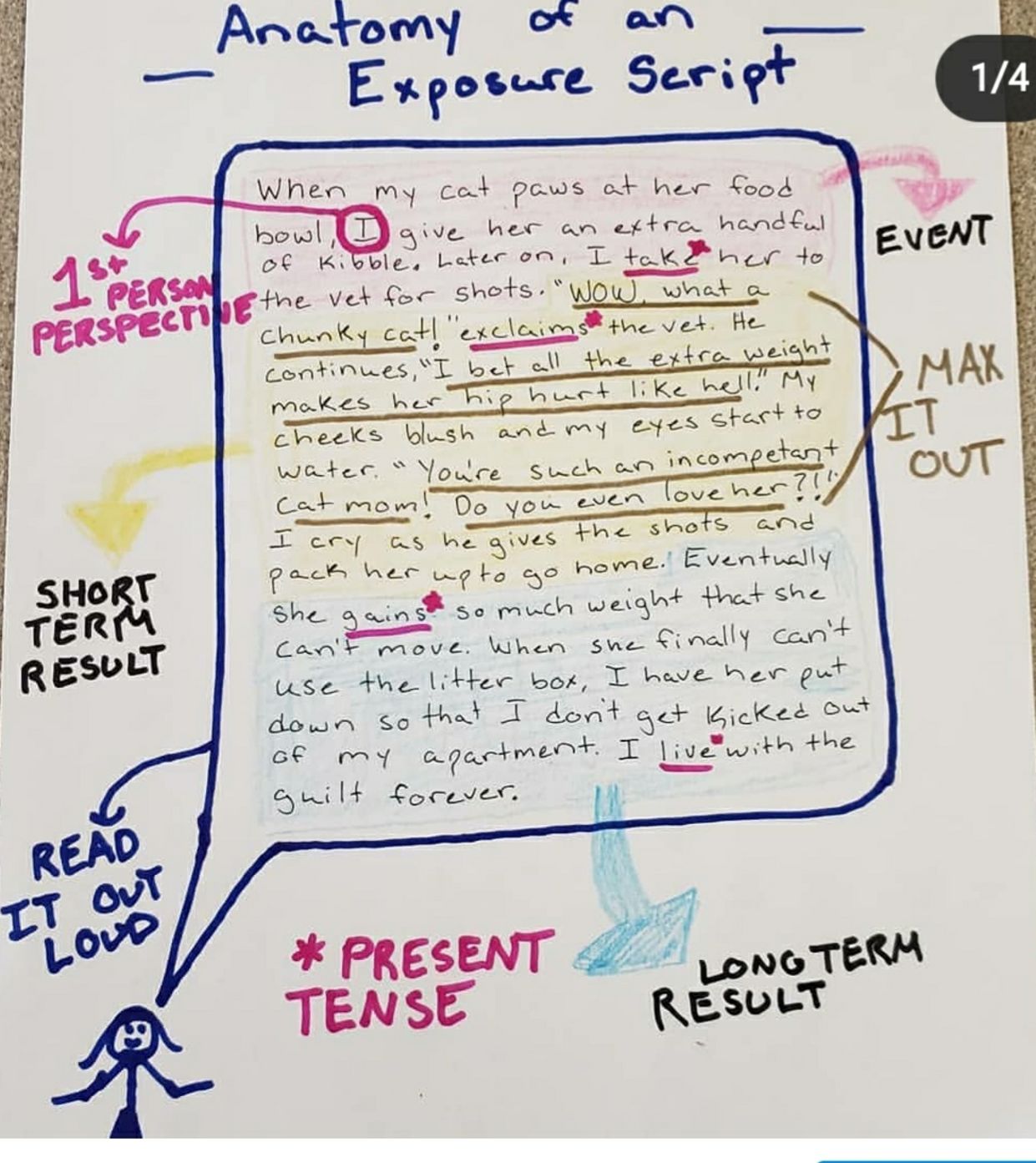 Your example and how to build this up is exactly what I needed. I’ve been doing some imaginative exposures but I tend to have my thoughts drift off in a different direction or a get distracted and I’m not sure how to stay on track. This made it a lot more clearer, thanks!